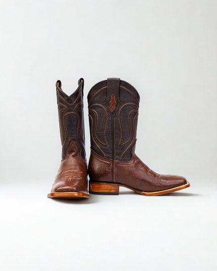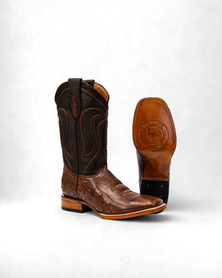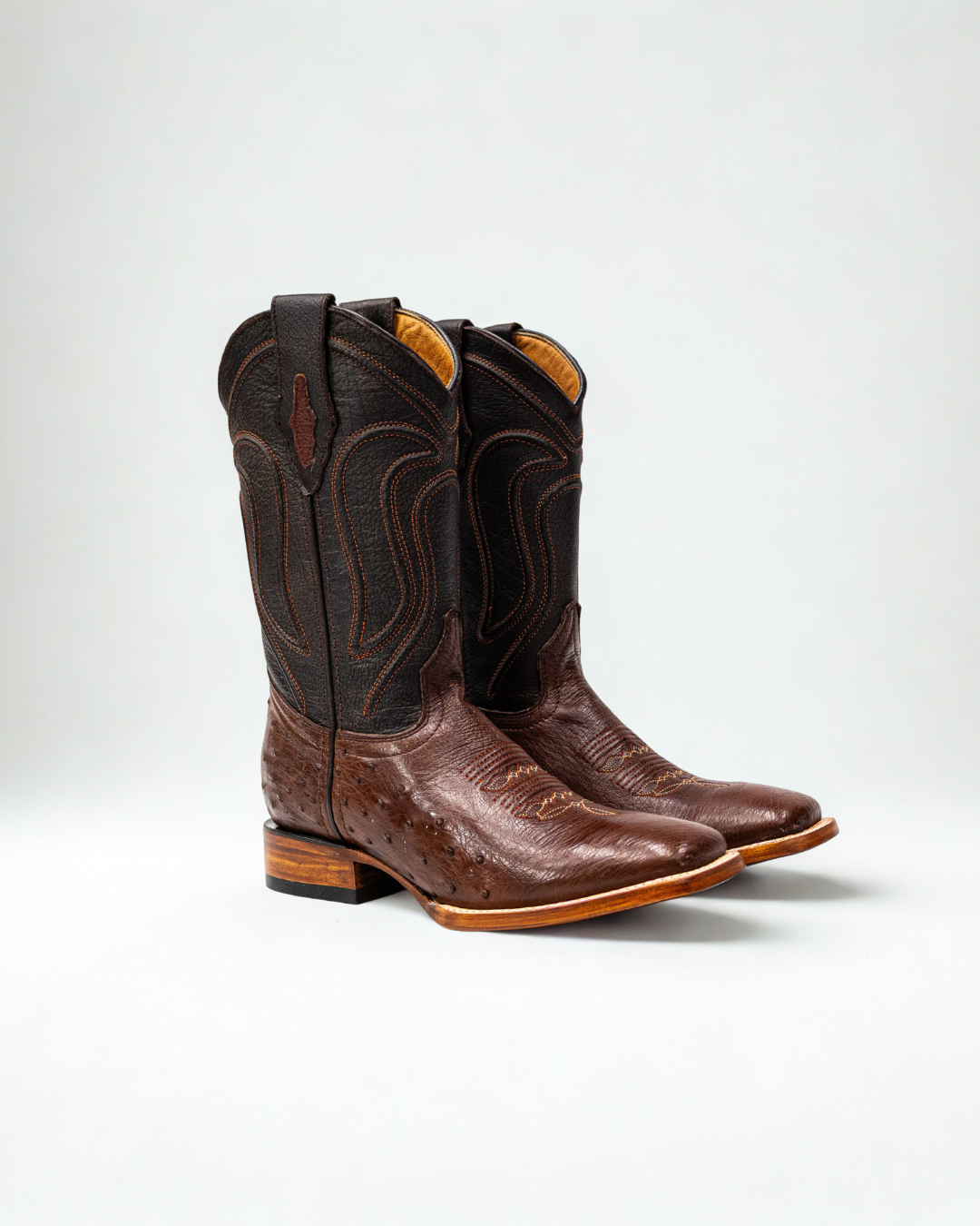 Original ostrich belly leather boot for men Brown color, with full leather lining, square toe
